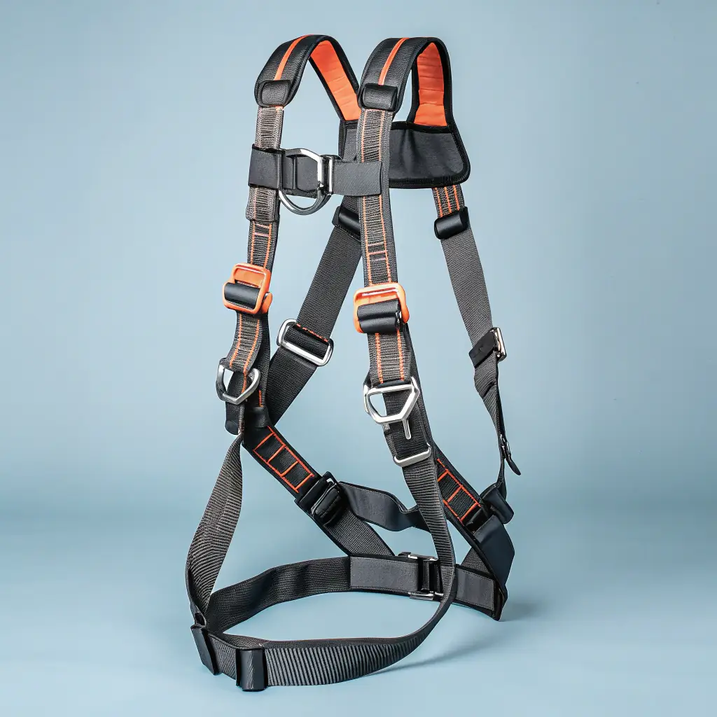 The Fall Protection Harness is designed to ensure safety when working at elevated heights. Made with high-strength nylon straps and quick-connect buckles, it offers a secure and comfortable fit. The harness features multiple attachment points for lanyards and lifelines, complying with safety standards. Essential for construction, roofing, and maintenance workers, it helps prevent falls and injuries.